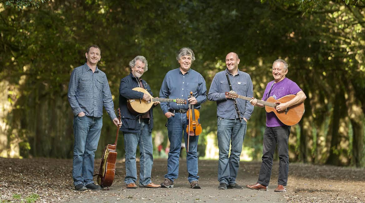 The five names in Usher’s Island read like a nominations list for an Irish traditional music hall of fame: Andy Irvine (Sweeney’s Men, Planxty), Dónal Lunny (Bothy Band, Planxty, Moving Hearts), Paddy Glackin (Bothy Band), Michael McGoldrick (Lunasa, Capercaillie [yes, I know that’s a Scottish band]) and John Doyle (Solas). I turned to John for some background on how this stellar grouping came about. He and Andy did several US gigs together around three years back and conversation often turned to Andy’s notion of forming a new band. After Planxty’s ‘final’ reunion came to an end in 2005 with the departure of Christy Moore, remaining members Andy, Dónal and Liam O’Flynn eventually teamed up with Paddy Glackin, forming LAPD, the band name coming from the initial letters of their first names. LAPD played its last gig in October 2013 and Andy began thinking about a band that would include today’s generation of Irish musicians. With Andy then in his early 70s, Dónal late 60s and Paddy just turned 60, John, in his early 40s, was just the man to add that dimension and with John’s contemporary and long-standing collaborator Michael McGoldrick coming on board, the perfect line up came together. By late 2014, Usher’s Island was ready for a few initial gigs leading up to that appearance at Celtic Connections 2015. Since then they’ve played a handful of gigs in Ireland. As John said, “it’s not easy to get together as a band” and so their appearance at FolkEast was an event to savour.
