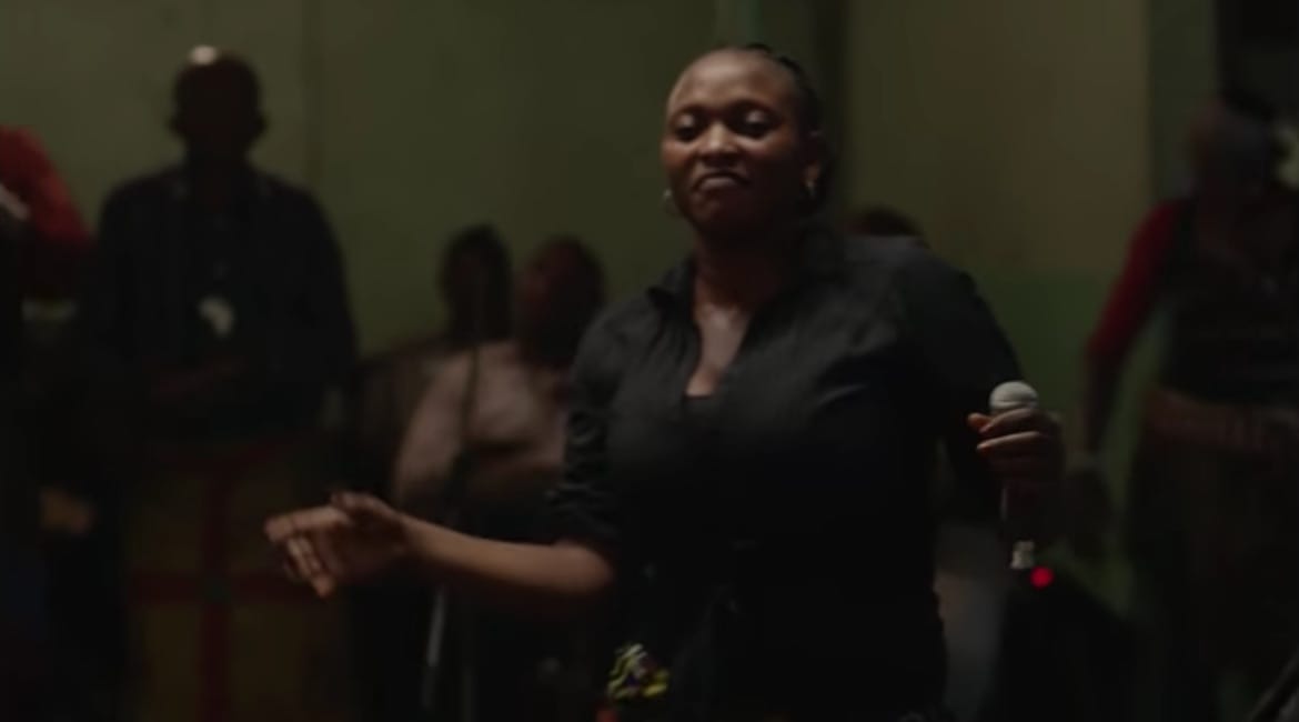 The band wrote and performed most of the soundtrack, and appears onscreen playing their own part. Muambuyi’s voice is omnipresent and is being heard every time Félicité (played by Congolese actress Vero Tshanda) sings in the bars of Kinshasa, backed by Kasai Allstars.