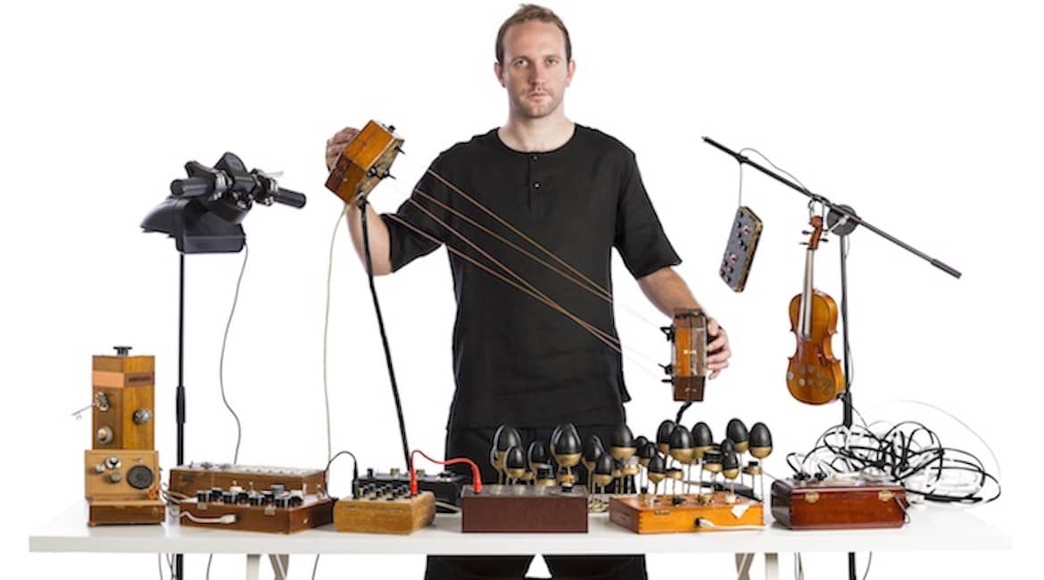 A video single and remix EP followed in 2012 but you might otherwise be forgiven for thinking that the newly relocated producer – from South London to the South Downs – has been idly whiling away the years away from music. You would, of course, be gravely mistaken. In the intervening years, Crewdson has produced remixes for the likes of Ninja Tune, Lo Recordings, Sunday Best and Brownswood Records. He has been releasing records as one-half of electronic soul duo Eckoclick alongside eclectic pop singer Femme. He has been the right-hand man to renowned electronic producer Matthew Herbert both on and off stage since 2009 and also now runs Herbert’s Accidental Records. He has been writing music for fashion shows for prominent designers Paul Smith and Phoebe English, collaborated with London’s National Centre for Circus Arts on a bespoke performance, worked with fashion designer Jodie Cartman to create a range of playable musical headpieces, has been on tour as tech support to Thom Yorke and has contributed sounds to the rescoring of the first ever British sci-fi movie ‘A Message From Mars’ as a part of The New Radiophonic Workshop in collaboration with the BBC and the BFI. He has also been building a myriad of weird and wonderful hardware electronic musical instruments such as The Odd Box, The Concertronica, The Eggiophone and The Sonic Bonnet…