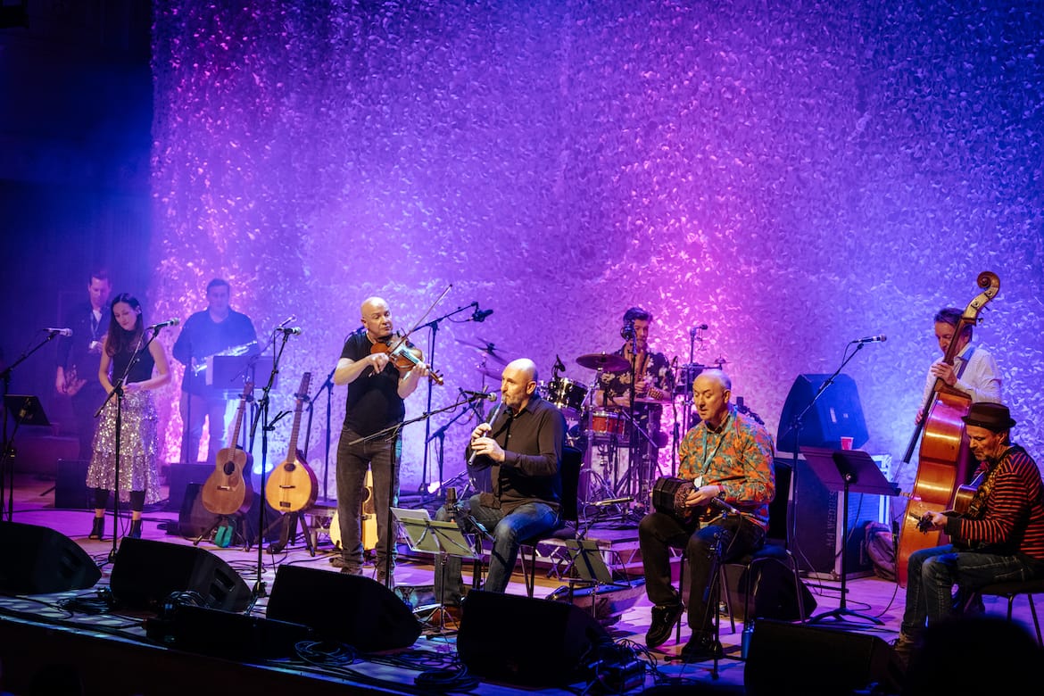 The celebrations for John McCusker’s 30th Anniversary as a professional musician culminated in a large gathering of musical friends at Celtic Connections. John, with typical humility, looked around the stage at the start and said: “It’s great to be here with such an amazing bunch of pals: it doesn’t get much better”. John also did a 30th Anniversary tour back in October/November, and has released a 30-track, 2-CD, Best Of, which we described as “an ideal introduction to the breadth and depth of one of the very best traditional musicians working today” (read our review here), and has published a book – John McCusker: The Collection – containing 100 of his tune compositions. We interviewed John a few weeks ago about his journey playing music since joining the Battlefield Band, now just over 30 years ago – you can read the interview here.