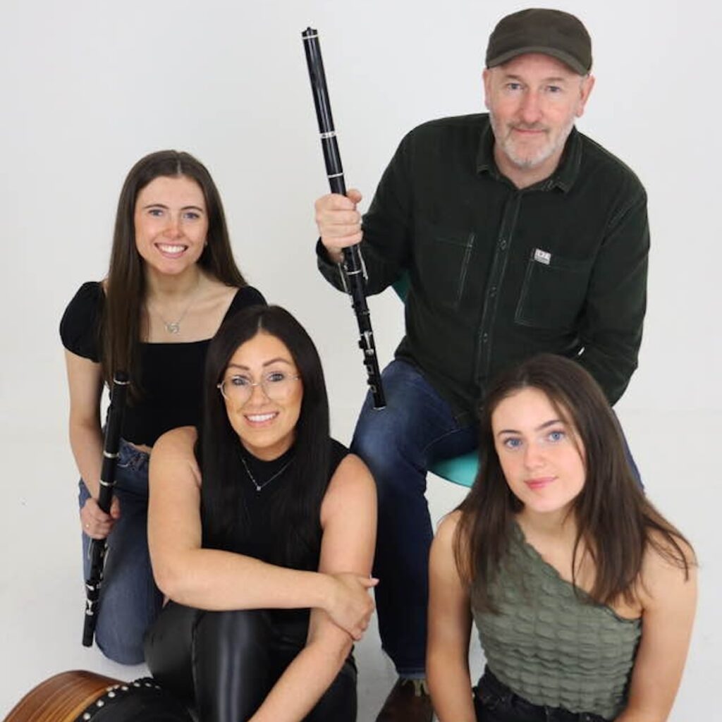 Michael McGoldrick’s older siblings all learned whistle, and he followed in their footsteps after starting on bodhran. Influenced by the likes of Matt Molloy and Seamus Tansey, he graduated to flute and later uilleann pipes, going on to be one of the most prominent traditional musicians of his generation. Michael’s playing and compositions, embracing a wide range of musical influences but always firmly based in traditional music, have inspired countless younger musicians, and he unfailingly makes time to encourage and mentor the next generation. Besides Michael, the family band comprises nieces, Catherine on wooden flute/whistle, Ciara on concertina/vocals, and Mairead on whistle/bodhran, accompanied on guitar by adoptee Jimmy Patrick from Barrow-in-Furness (Jimmy used to travel a considerable distance to Manchester, when Michael was at home, to play in a Sunday night session with him). Catherine, Ciara, Mairead and Michael found time to tell me about making the album, what influenced them and what it’s like to be playing together.